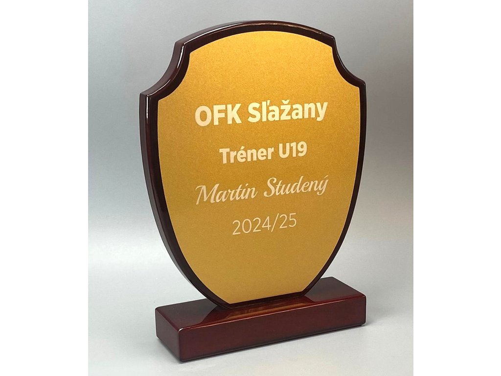 Elegantní dřevěná plaketa na podstavci je vyrobena ze dřeva v odstínu mahagon, s možností gravírování na kovovou plaketu. Má hladký povrch a ve spojení s gravírovaným textem vytváří příjemný vzhled plakety. Design plakety je ideální volbou pro různé druhy společenských událostí, speciální sportovní akce a pod. Cena je včetně gravírování.