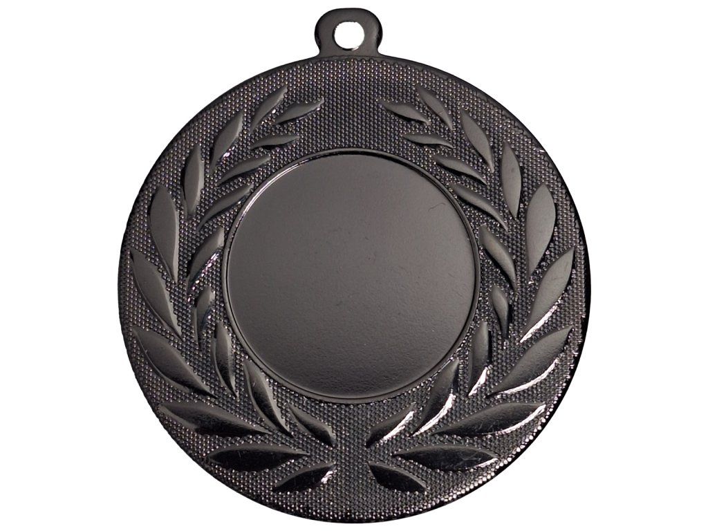 Kovová medaile v černém provedení s možností zavěšení na stuhu (dle vlastního výběru). Na přední straně je možnost umístění vlastního emblému nebo z nabídky (průměr 25mm). Na zadní stranu medaile je možnost umístění grafiky/textu (průměr 44mm).