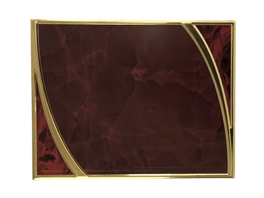 Elegantní kovová plaketa určená na gravírováni ve zlatém odlesku s hnědou barvou. Plaketa je vyrobena s důrazem na detaily a design, který dodává jejímu vzhledu jedinečný charakter. Design plakety je ideální volbou pro různé druhy společenských událostí, speciální sportovní akce a pod.