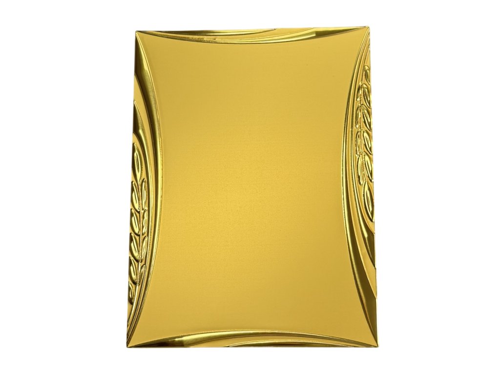 Dekorativní plaketa je určena pro sublimaci (s orientací na výšku nebo i šířku), je vyrobena z ozdobného plechu ve zlatém odlesku. Design plakety je ideální volbou pro různé druhy společenských událostí, speciální sportovní akce a pod.