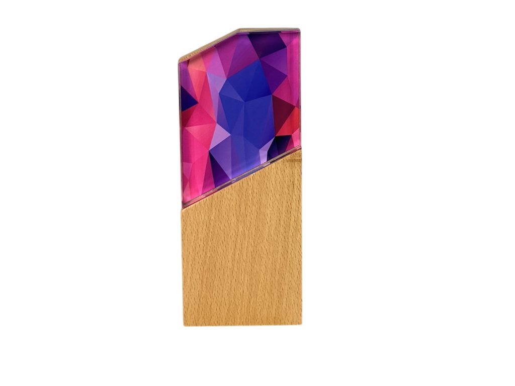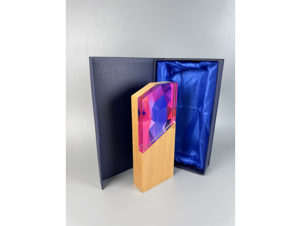 Stylová plaketa v kombinaci sklo/dřevo, s možností gravírování na dřevo. Dizajn skla je ideální volbou pro různé druhy společenských událostí, speciální sportovní akce a pod.