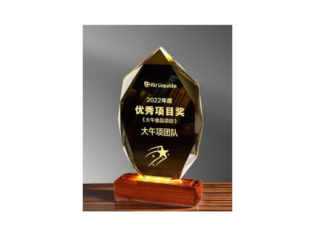 Stylové sklo na dřevěném podstavci s LED podsvícením, činí tuto trofej elegantní, s možností gravírování na sklo. Design skla je ideální volbou pro různé druhy společenských událostí, speciální sportovní akce a pod.