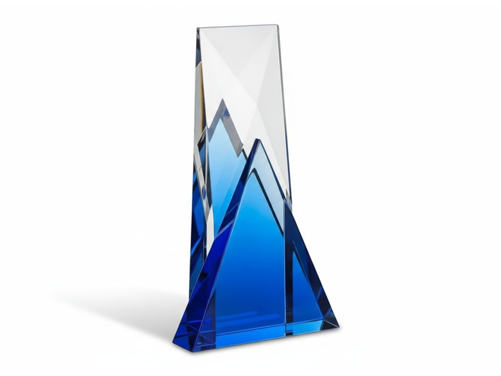 Elegantní sklo s modrým podstavcem, s možností gravírování na sklo. Design skla je ideální volbou pro různé druhy společenských událostí, speciální sportovní akce a pod.