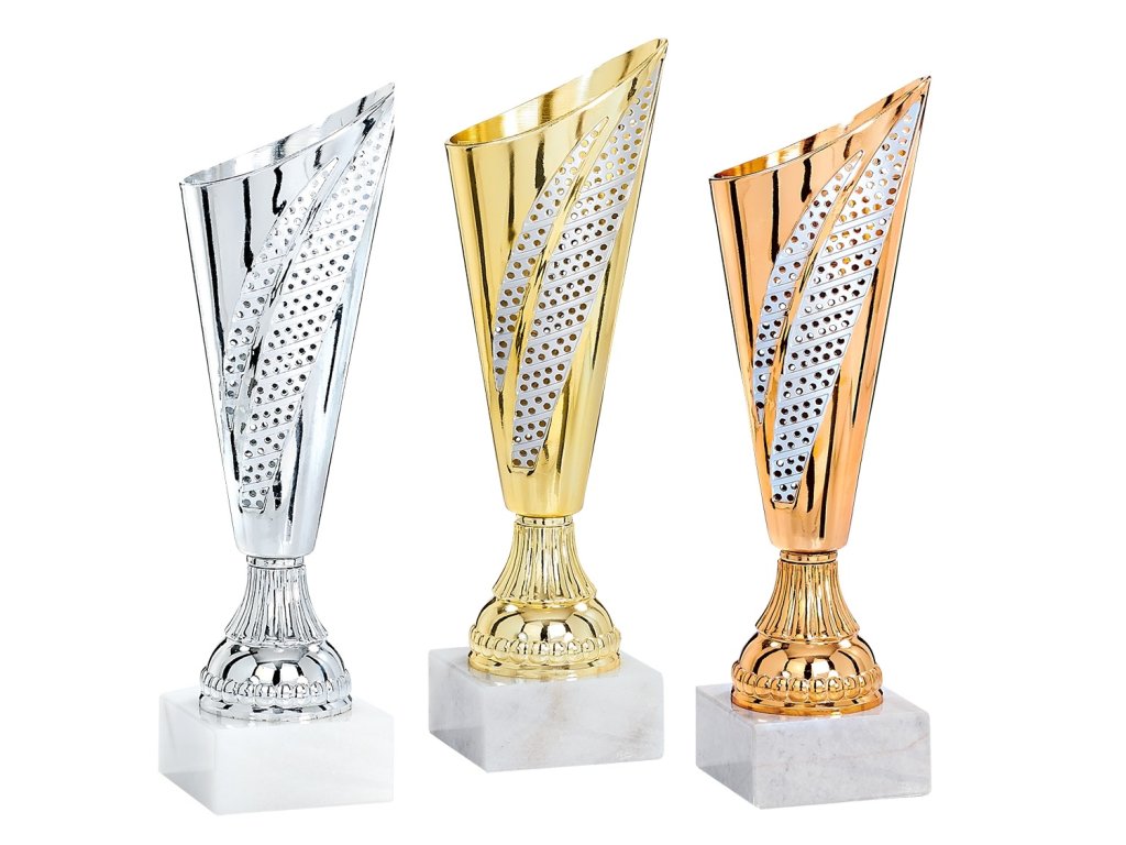 Unikátní pohár ve zlatém, stříbrném nebo bronzovém provedení s jemným detailem na kalichu, uložená na mramorovém podstavci. Trofej lze doplnit o gravírovaný štítek, který je umístěn na podstavci. Pro odstupňování pořadí oceněných jsou dostupné 3 barevné varianty.