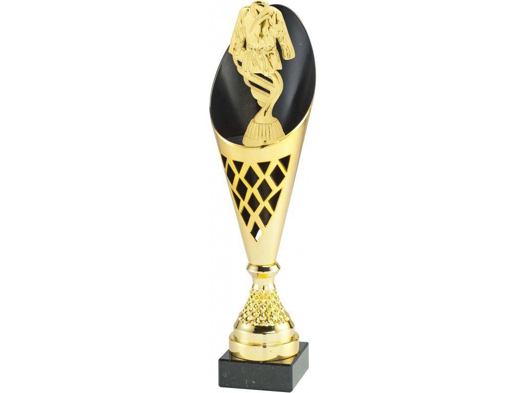 Stylový vzhled trofeje vytváří tento unikátní zlatý podstavec, na kterém je vsazena zlatá figurka s motivem karate/judo. Trofej je umístěna na mramorovém podstavci s možností gravírovaného štítku umístěného na podstavci. Varianty jsou dostupné ve 3 velikostech pro odstupňování pořadí oceněných.