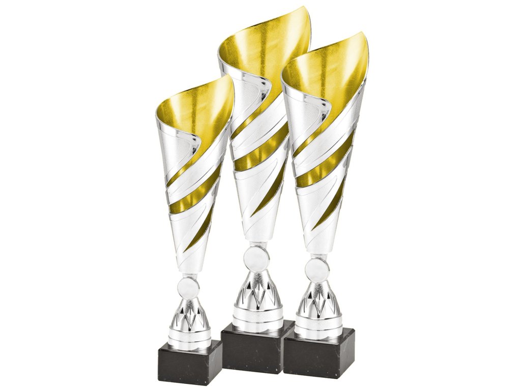 Moderní design sady pohárů vytváří jedinečný tvar kalicha se zlatým detailem, který je umístěn na mramorovém podstavci. Je ideální volbou pro všechny typy sportů a lze jej doplnit o emblém (25mm) + gravírovaný štítek umístěný na podstavci. Varianty jsou dostupné ve 3 velikostech pro odstupňování pořadí oceněných. Tato trofej může být udělena za úspěch a triumf jednotlivce nebo kolektivu ve sportovním nebo jiném odvětví.