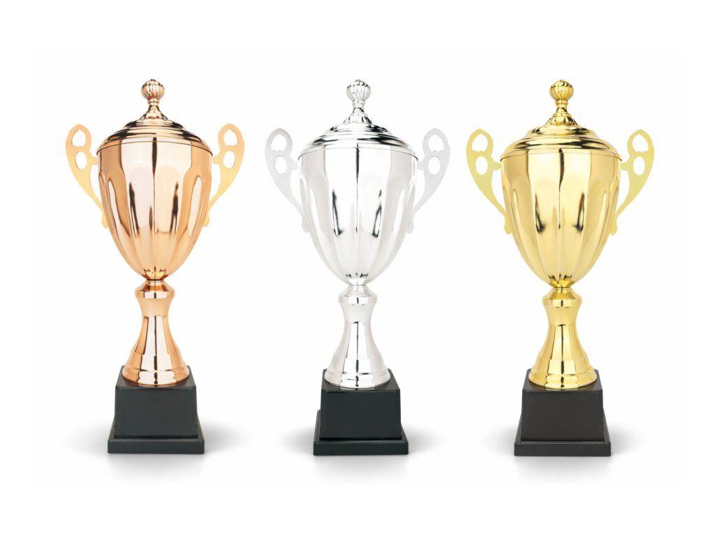 Unikátní pohár ve zlatém, stříbrném nebo bronzovém provedení se zajímavým detailem na kalichu jsou doplněny o stylovymi vrchnáky, uložená na plastovém podstavci. Trofej lze doplnit o gravírovaný štítek, který je umístěn na podstavci. Pro odstupňování pořadí oceněných jsou dostupné 3 barevné varianty.